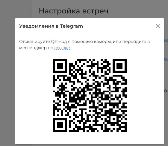 Для настройки уведомлений через Telegram вам следует подключить свой аккаунт. Сначала нажимаете на кнопку Подключить, и в отдельном окне появляется на выбор QR-код и ссылка, по которым вы переходите в мессенджер.